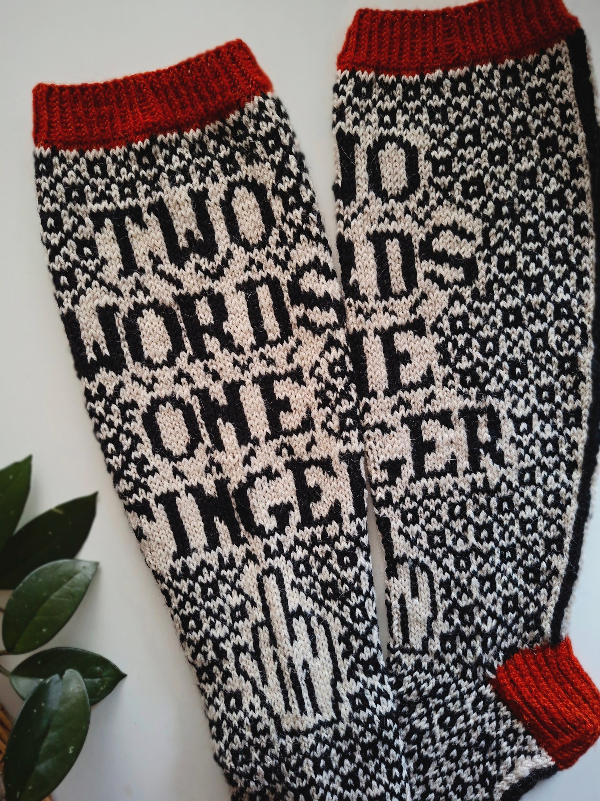 The One Finger socks are worked from the cuff down to the toes in stranded colorwork. Use an accent color to highlight the cuff, heel, and toe. The pattern includes two calf sizes for the leg and adjustable charts for the foot to match your foot size.